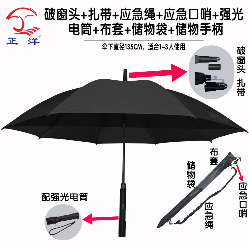 然而,這款戰術雨傘的獨特之處遠不止于此。它帶有破窗頭,這可是一個關鍵的安全設計。想象一下,在遭遇緊急情況,比如車輛不慎落水,或者發生火災等意外,車門無法正常打開時,這小小的破窗頭就能發揮巨大的作用。它經過特殊設計,硬度極高,在關鍵時刻,只需用力揮動雨傘,破窗頭就能輕松擊碎車窗玻璃,為我們開辟出一條求生通道,讓我們能夠迅速逃離危險境地。這無疑是為我們的生命安全增添了一份重要的保障。