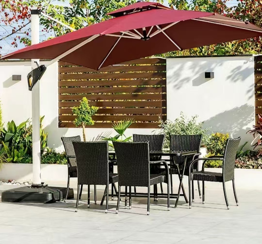 對于家庭用戶而言,庭院遮陽傘與露臺戶外傘是提升居家幸福感的關(guān)鍵。若是擁有寬敞花園,花園戶外大傘能覆蓋大面積活動區(qū)域,搭配桌椅便成了周末下午茶的理想角落;若陽臺空間有限,小巧的陽臺戶外傘則更為適配,既能阻擋陽光直射,又不占用過多空間。材質(zhì)上,鋁合金戶外傘憑借輕便耐用的優(yōu)勢成為主流選擇,而布藝戶外傘則以多樣花色為庭院增添溫馨氛圍。功能上,升降戶外傘可根據(jù)日照角度調(diào)節(jié)高度,旋轉(zhuǎn)戶外傘能 360 度遮擋陽光,雙頂戶外遮陽傘通過雙層設(shè)計增強通風(fēng)性,即便是炎熱夏日也能保持涼爽。